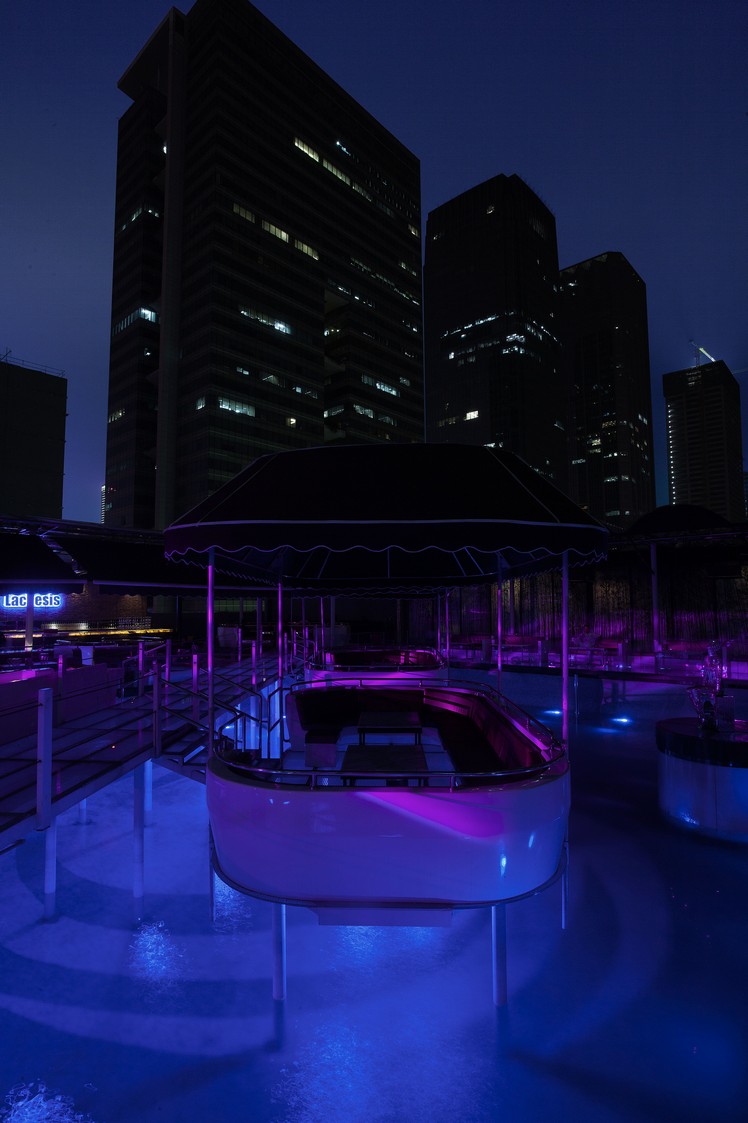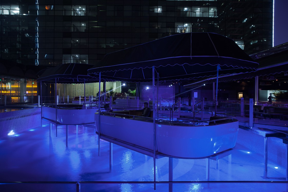 潺潺水流,女神仰望星空,眼中閃爍期望,滴滴水珠從身旁滑落,性感撩人!白色散臺設在水面之上,如同大海中航行的船只。透明的玻璃連接室內與室外,盡享LA迷人夜景。輕松的音樂,朦朧的燈光,些許倦意,在踏入LA的那一刻,揮之殆盡!