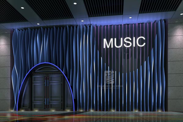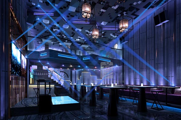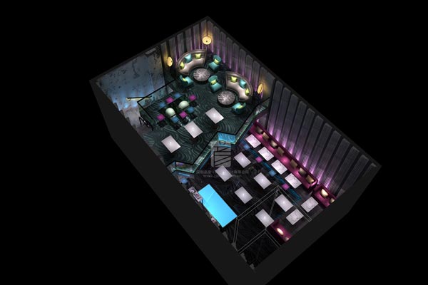 設計師根據本案派對空間的定位,采用幾何圖案的浮雕設計,讓整個墻面更立體,線條的組合也更有層次感,在燈光的映襯下,透露出濃濃的布魯斯風情。進入內部空間,充滿設計感的搖滾氣質撲面而來,設計師用卡座、吧臺的設計進行空間分割,背景墻在滿足酒吧性能的基礎上,采用簡約的線條設計,簡單明了卻也硬朗干練。為滿足音樂酒吧的功能性,設計中突出了舞臺的功能分區,舞臺不大卻功能齊全,能讓整個空間享受搖滾的熱情,配合變幻的燈光、搖擺的射燈,營造出很好的休閑氛圍。燈具的選擇,設計師別出心裁,沒有采用傳統酒吧常用的頻閃燈,而是采用了充滿金屬質感的玻璃罩燈具作為主要設計,配合可以多角度搖擺的射燈,營造氛圍的效果一點不差,反而更突出了舞臺的感染力,震撼的音樂讓每個人的毛孔都張開,盡享搖滾帶來的恣意人生。