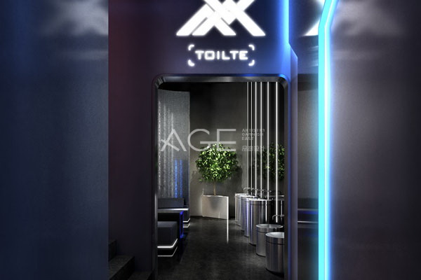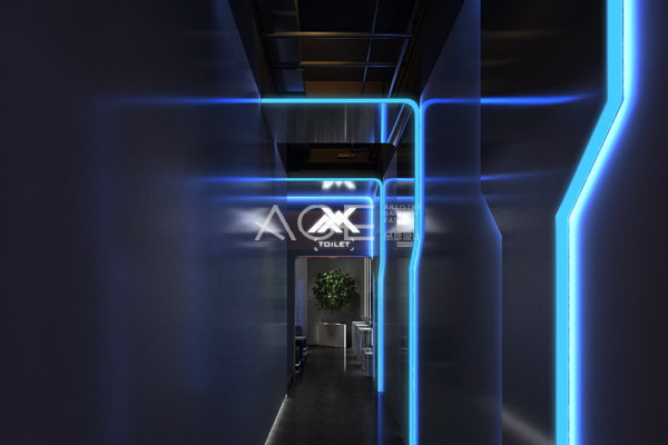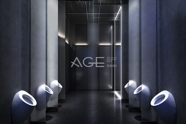 酒吧的走廊部分典雅中不失氣質,微微反光的墻面設計讓一切若隱若現,俗話說,朦朧美才是真的美。淺藍色的燈光既是照明更是藝術設計,流動的曲線,在墻體中反射出另一空間,帶著音樂,十足的未來感,如同穿越時光機的隧道,馬上要進入神秘空間一般。