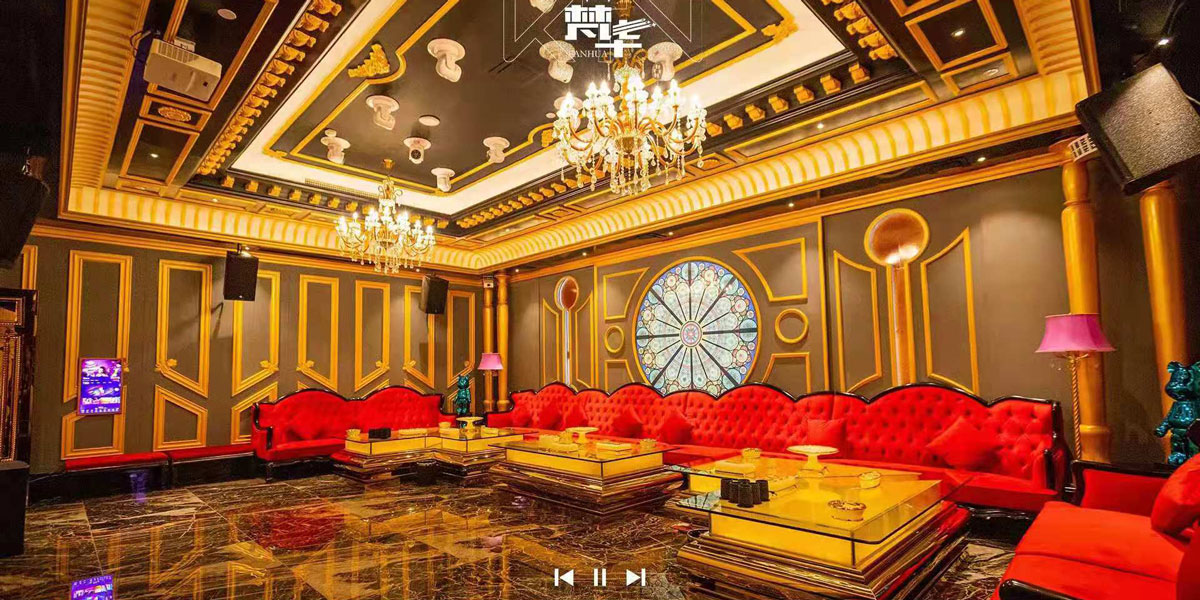 包間的設計色彩濃郁了許多,燈光的運用渲染氛圍,對色彩把握非常重要。燈光設計不僅僅停留在照明這個基本功能上,而更重視環境的營造和風格的塑造,每間KTV包房設計都少不了華麗的燈飾,嵌入在圖案豐富、造型別致的天花中,顯得更加高貴。通過照明元素的運用和照明局部的強化,整體產生或幽靜、或熱烈、或豪華、或素雅等良好的視覺效果。