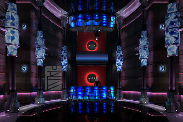 從遠處觀看美國MICS KTV整體設計,視覺效果十分亮化,現代歐美的風格,給人特別強烈的線條感和立體感,色彩對比十分的耀眼,大氣場一目了然。地板兩色設計和天花板不規則的設計,貫穿室外到室內的整體性,無形中體現出歐美格調,讓時尚感和科技感有了一種活力四射。