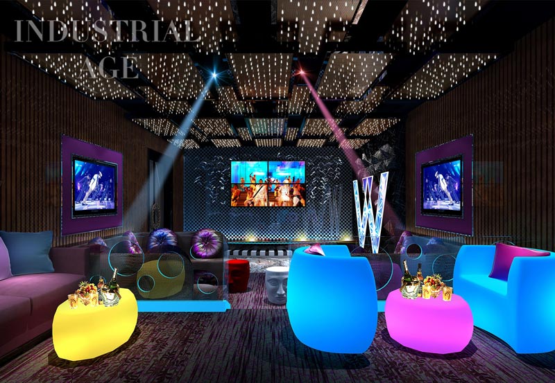 KTV的總體設計,正是在把握全局的裝飾風格基調的基礎上,兼顧了一個極開放,極大眾話,另一個又極私密,又極具個性的裝飾風格,從而使KTV無論是在裝飾設計的層層深入中,還是在建成后,客人們無論是在進入大堂之處,還是在各功能空間的動態感知以后,都給人們展現了一幅觀賞性及藝術性并重的畫面。