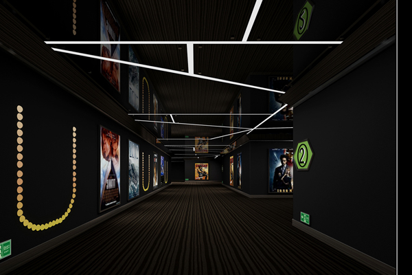 設計說明:影城是一個消費人群相對密集的場所,所以在設計中除了基本的空間視覺效果以外,更要考慮到安全問題,及消防通道、燈光布置、地面地臺等等的合理性。另外在設計選材上面也有嚴格要求。本案的設計遵循影城特有屬性,以簡約時尚為主??臻g布局合理,讓人感覺非常舒服。