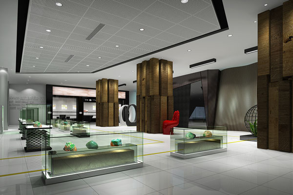 設計說明:商業空間設計不同于娛樂空間,尤其是文化空間,一定要求設計師有很深的文化底蘊,才能將博物館注入生命。本案為花都區最大的翡翠博物館,設計理念源于翡翠本身的歷史沉淀和價值。包括展示功能區的合理劃分、整體空間燈光搭配、軟裝飾物的搭配、展示托架的設計和選用、翡翠擺件的燈光選用顏色搭配,都經過品彥設計師嚴格的把控。品彥就是這樣一絲不茍的對待任何一件作品。