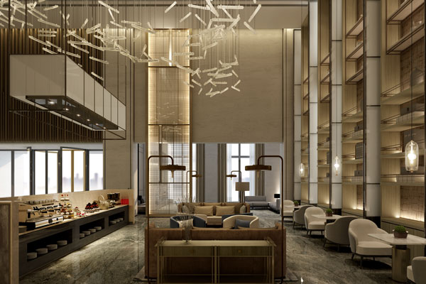 酒店的大堂整體混合了天然的原材料,大膽啟用了黑白分層色調的大理石地面平衡。整個酒店都有一個基礎調色板,適合于為每個空間賦予明確的個性和特色。酒店設計一般都選擇溫馨簡樸的風格,這很符合當現代人的審美和需求。讓空間與裝飾環境的完美結合,這樣的酒店大堂,一切彷佛都那么自然,當陽光穿透紙門投下來的陰影,能夠讓消費者在簡約優雅的環境中感受到酒店的獨特魅力。