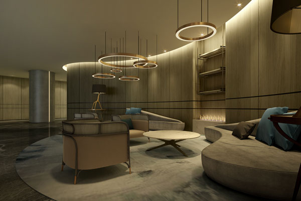公共休息區域寬敞明亮,兩層通高,形成整個首層的核心空間,其他的功能配套如接待區等功能空間皆圍繞其展開。后面隱蔽的休閑區域有效解決前后區域劃分帶來的困擾,同時也避免干擾,營造了一個溫馨舒適,直抒心臆的趣味交流空間。休閑區明媚的燈光、樸拙的地面、溫暖的木、混搭的家具在一起形成空間次序上的對話,安靜婉約,溫暖而舒朗。