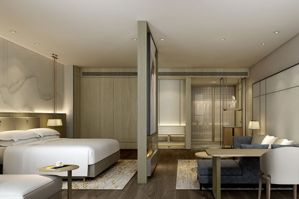 酒店房間為了呈現出獨特的簡約風格,在整個酒店的設施配套上,選擇符合其風格的家具,如傳統的竹葉,云的圖案,以及則鋪有優美花紋的地毯等,既有傳統舒適又符合現代特色,這樣才能讓酒店每一寸都透露著不一樣的文化韻味。