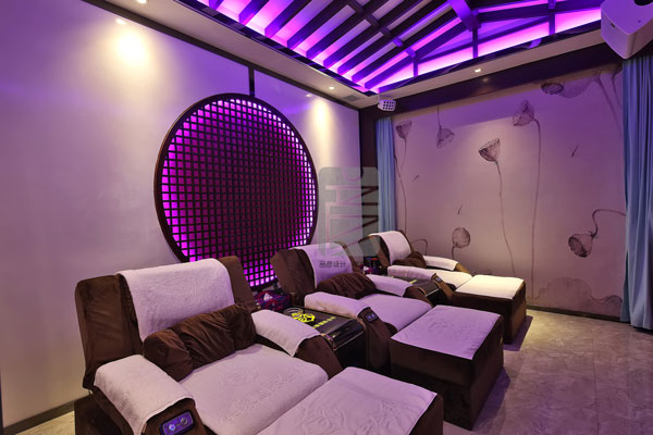為體現溫暖的氣息與光澤,設計師采用橡木、柚木、杉木等優質木材,從深層次上展示會所的文化內涵。設計師在把握線條和色彩上延續了自己民族的歷史并積極吸收泰式與日式的設計風格,將古典、明快的氣息都融到會所的設計中。東南亞的裝飾時而舒張時而含蓄,嫵媚中蘊含著神秘,并兼具平和與激情。作為會所設計,這種格調設計營造的是“情調”和“調情”。燈光的營造也是奧園水療會所的一項杰作;縷縷的香薰煙霧在空氣中繚繞,在柔和的燈光照射下展現出誘人的魅力,點點滴滴、絲絲縷縷。
